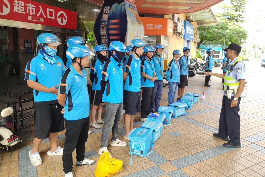 为切实增强外卖骑手的交通安全意识,预防并减少道路交通事故的发生,10月10日上午,思明交警大队嘉莲中队深入“饿了么”站点,为新就业形态劳动者们举办了一场交通安全宣讲活动。