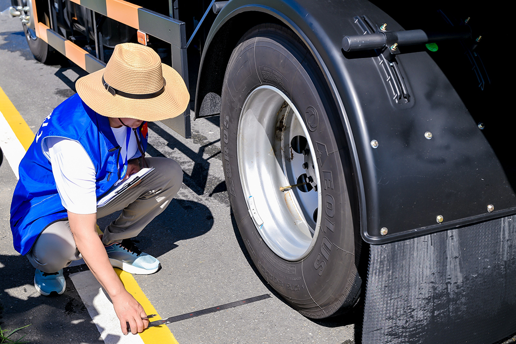 连续冲洗环节,则进一步挑战选手的操控能力。两侧微小的砝码、木块需被水流完全冲出,但不得越出外侧考核线……因此,选手们需在匀速行进中精准控制水柱方向与强度,既不能“用力过猛”导致越界扣分,也不能“力道不足”留下残余。这正是日常道路清洗中避免“误伤”行人、公共设施的真实写照,体现环卫作业不仅要完成任务,更要安全高效。最后的倒车入库也分秒必争,选手不能放松,需要将大型车辆沿指定路线准确倒入库位,车身后箱距库边线距离不得小于50厘米,车轮任何一侧距车库边线不得小于40厘米,全程不得触碰任何标杆或标线。
