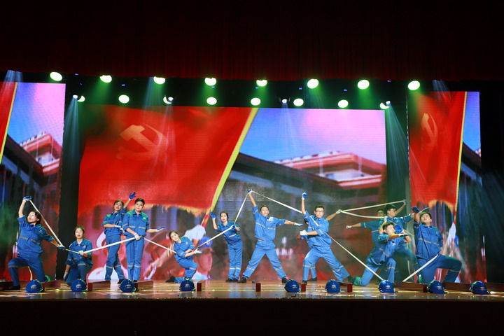 挖隧道,建地铁,搭桥梁……作业工人顶着烈日酷暑加班加点,工程技术人员没日没夜穿梭在施工一线……诗朗诵《不忘初心,牢记使命》也是中铁十八局集团选送的节目,通过情景表演加诗朗诵的形式,生动刻画火热的劳动场面。与之异曲同工的,是中建海峡(厦门)建设发展有限公司选送的情景诗舞剧《传奇》。《传奇》讲述了莆田会展中心的建设历程,3200多名劳动者克服高难度,创造高质量,用180天建成一个十亿工程项目。加速!加速!加速!千千万万一线职工用双手和双肩,扛起中国崛起的速度!