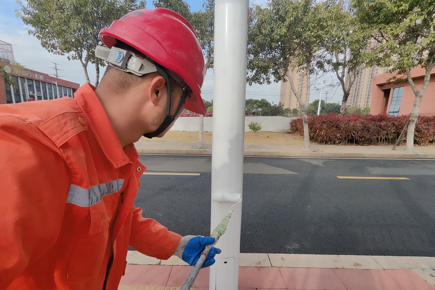 灯杆“焕颜”,擦亮城市“风景线”。“路灯也要穿新衣过年!”路灯班站给辖区灯杆安排了 “焕颜套餐”:先用高压水枪冲掉灰尘污渍,再用砂纸把锈点磨平,最后刷上防腐防锈的新漆。原本斑驳的灯杆,一下子变得“干干净净、亮亮堂堂”。一根根“穿新衣”的灯杆整齐立在路边,与沿街红灯笼相映成趣,成了新春里一道鲜活的“街边小风景”。