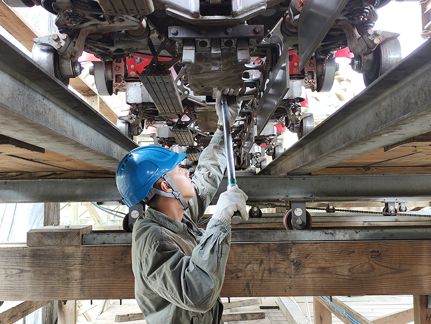 全木质过山车的维护要求远高于普通过山车,早检加晚检共64项科目,容不得半点疏忽。除少数项目需器具测量,大部分全靠他目测、耳听和感官判断异常,轨道上的每一颗螺丝都亲手检查松紧,传动链条也每日测试润滑系数,这些烦琐的流程,都是安全运行的关键。检查完毕只是第一步,为了彻底排除安全隐患,劳天祥和同事还要进行两遍空车试运行,确认无任何问题后,再亲自坐上过山车完成两遍载人测试,只有当所有测试都顺利通过,才能宣告“丛林飞龙”可以以最佳状态迎接当天的游客。这个春节,当家乡的亲人围坐一堂,劳天祥却在数米高的轨道上忙碌,在一次次检查、测试中,守护着游客的欢乐与安全。他说,虽然不能回家过年,但看到游客坐上过山车时的欢呼与笑容,便觉得一切付出都值得,游客的快乐,就是他这个春节最特别的年味。
