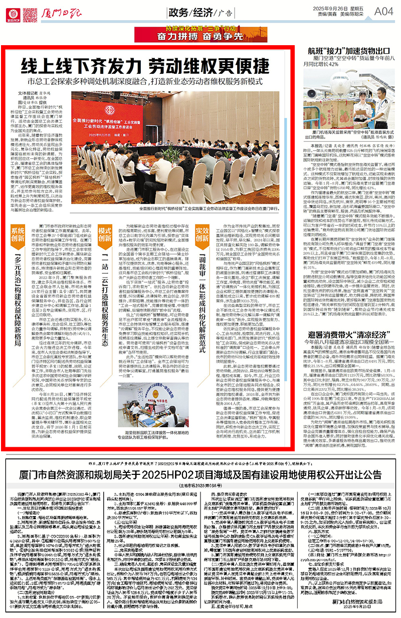近年来,随着数字经济蓬勃发展,新就业形态劳动者群体规模迅速壮大,劳动关系呈现出多元化、复杂化特征,劳动权益保障面临前所未有的新课题。为积极回应这一新变化,在全国总工会、福建省总工会的具体指导下,厦门市总工会持续创新发展新时代“枫桥经验”工会实践,探索推进“园区枫桥”“驿站枫桥”等调处机制深度融合,构建覆盖更广、运作更高效的维权服务体系,并主动参与地方立法,将实践成果上升为制度规范,以法治为新业态劳动者权益保驾护航,率先走出一条工会组织深度参与基层社会治理的新路径。