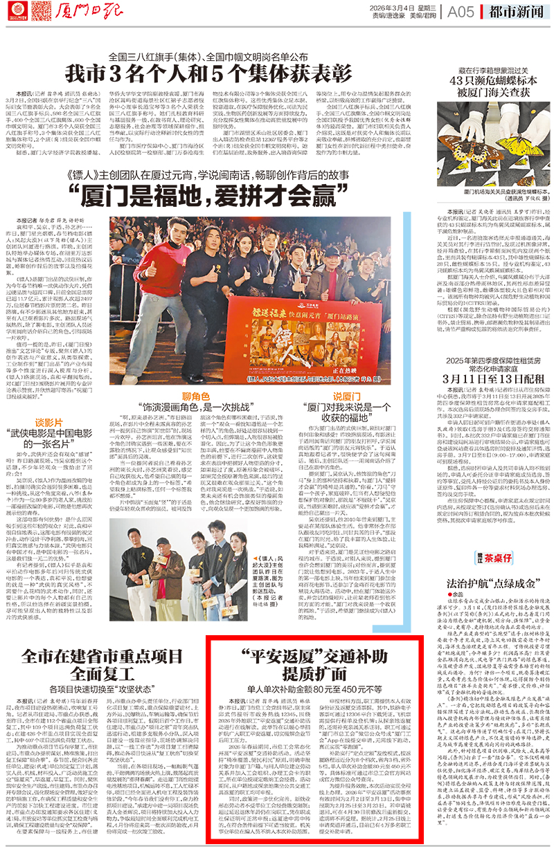 2026年春运期间,市总工会常态化开展“平安返厦”交通补助活动。活动坚持“精准覆盖、便民利民”原则,明确申报对象为非厦门户籍、与用人单位建立劳动关系并加入工会组织、办理工会卡的职工,所在单位按规定缴纳工会经费。活动期间,从户籍地或探亲地乘坐公共交通工具返厦的职工均可申报。