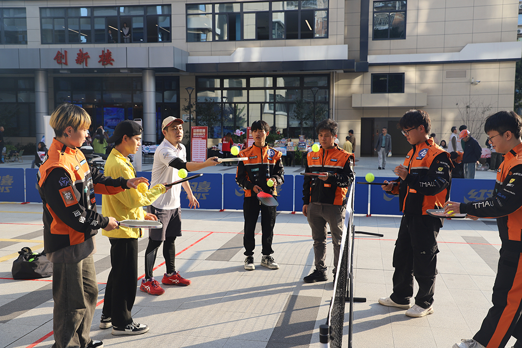 赛场外,户外互动体验区被精心打造成一个开放式乐园。一旁的匹克球体验区,很多骑手第一次拿起球拍,在专业教练指导下玩得不亦乐乎。“跃动书页”街舞快闪、“声遇经典”诗朗诵、电竞主题歌曲串烧等活力快闪秀,不定时点燃现场气氛。