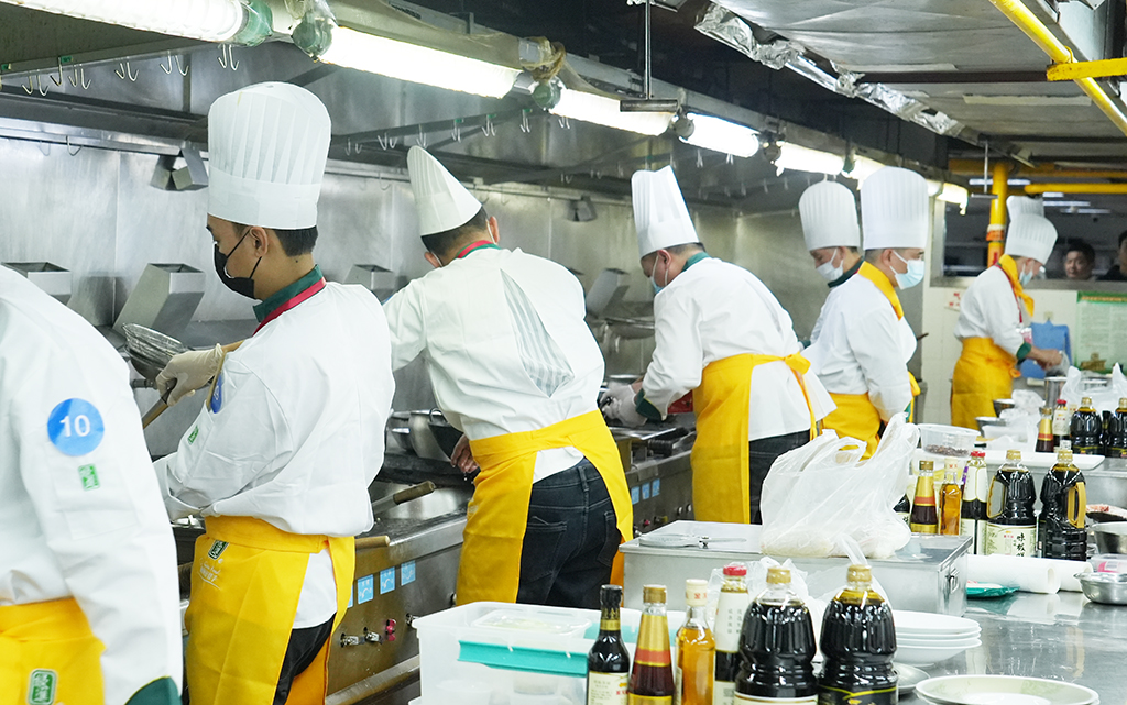比赛现场,随着开赛指令下达,酒店后厨灶火升腾。锅勺碰撞声、油水嗞啦声交织成一片。比赛分为5轮进行,每轮比赛60分钟,选手们需在规定时间内完成两道自选热菜。