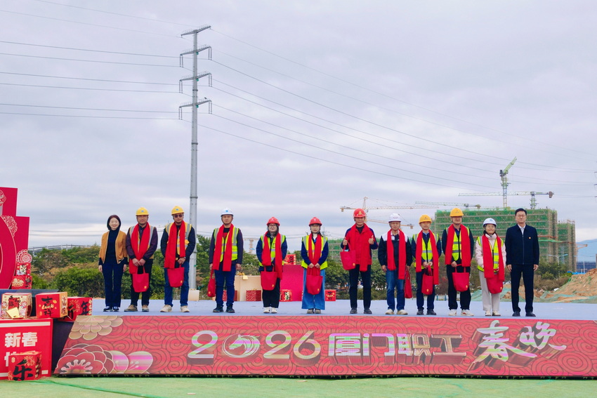 1月25日厦门市总工会2026“两节”走基层慰问演出走进同翔高新城片区,将“娘家人”的关怀送到一线建设者身边。来自厦门市总工会,同翔高新城片区指挥部相关负责人及高性能锂电池建设项目、专精特新产业园区多项目的一线建设者450多人参加活动。活动由厦门市总工会、厦门广播电视集团、同翔高新城片区指挥部主办,厦门市制造业工会联合会、厦门火炬集团有限公司承办,厦门时代新能动力科技有限公司、中交一公局(厦门)同翔高新城投资建设有限公司、中建一局集团东南建设有限公司协办,厦门广播电视集团节目中心策划执行。