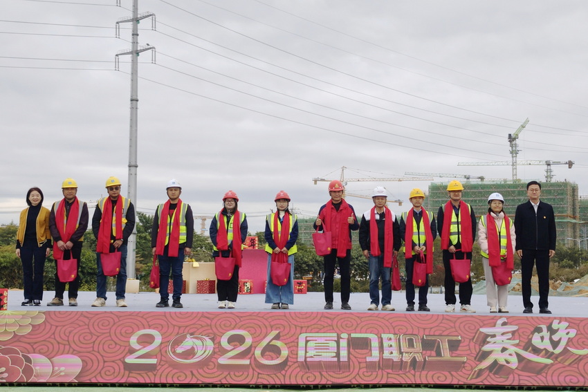 根据福建省总工会2026年全省工会“两节”期间送温暖行动行动部署,12月28日,厦门市总工会启动全市“工会送暖·福地同春”主题送温暖行动。在集美软件园TOD项目工地现场,市总工会党组书记、副主席邱武伟为职工代表赠送两节慰问品。1月25日,走基层慰问演出走进同翔高新城片区,将工会“娘家人”的温暖送到奋战在建设一线的产业工人和项目建设者身边。