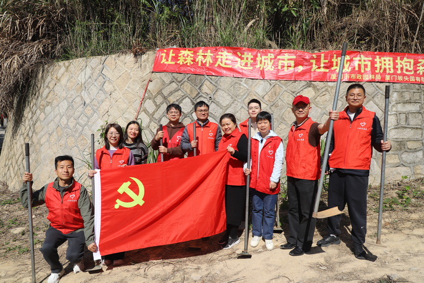 春风送暖,草木蔓发,恰逢开展全民义务植树运动45周年、我国第48个植树节,正是植绿护绿的黄金时节。为深入贯彻习近平生态文明思想,积极践行“绿水青山就是金山银山”的发展理念,弘扬爱绿、护绿、兴绿的文明新风,3月13日上午,厦门市总工会组织党员志愿者联合社区志愿者,前往集美坂头林场开展苗木抚育除草志愿服务活动,以实际行动落实市级义务植树任务,为林区生态建设添砖加瓦,守护鹭岛绿色家园。