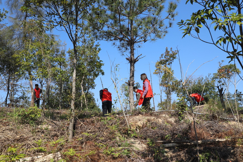 集美坂头林场内草木萌发、生机盎然,却有不少杂草借着春日暖阳肆意生长,抢夺苗木的养分与水分,影响林木健康发育。活动现场,志愿者们身着红马甲,热情高涨、精神抖擞,在林场技术人员的专业指导下,快速掌握除草抚育的技巧与要点——既要彻底清除苗木周边杂草,也要翻除草根防止复长,同时精准避开苗木根系避免损伤。大家两人一组、分工协作,有的手持镰刀割除高处杂草,有的挥起锄头翻挖草根、平整土地,有的仔细清理树穴周边杂枝,各环节衔接有序、配合默契。锄头挥舞、镰刀起落,志愿者们忙碌的身影遍布抚育地块,汗水浸湿衣衫却丝毫未减劳动热情,欢声笑语与劳动声响交织,汇成一曲生动的护绿乐章。