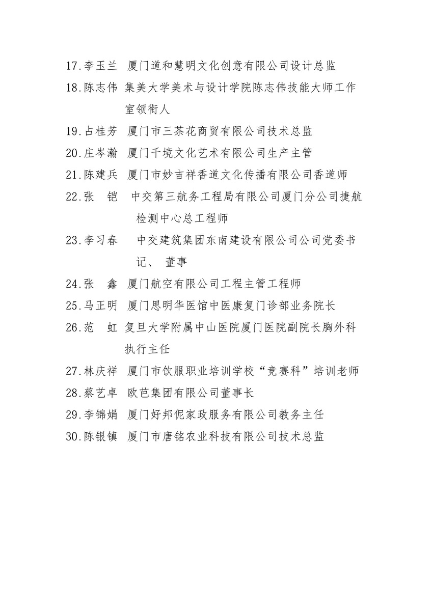 关于2025年厦门市“鹭岛工匠”培育对象的公示