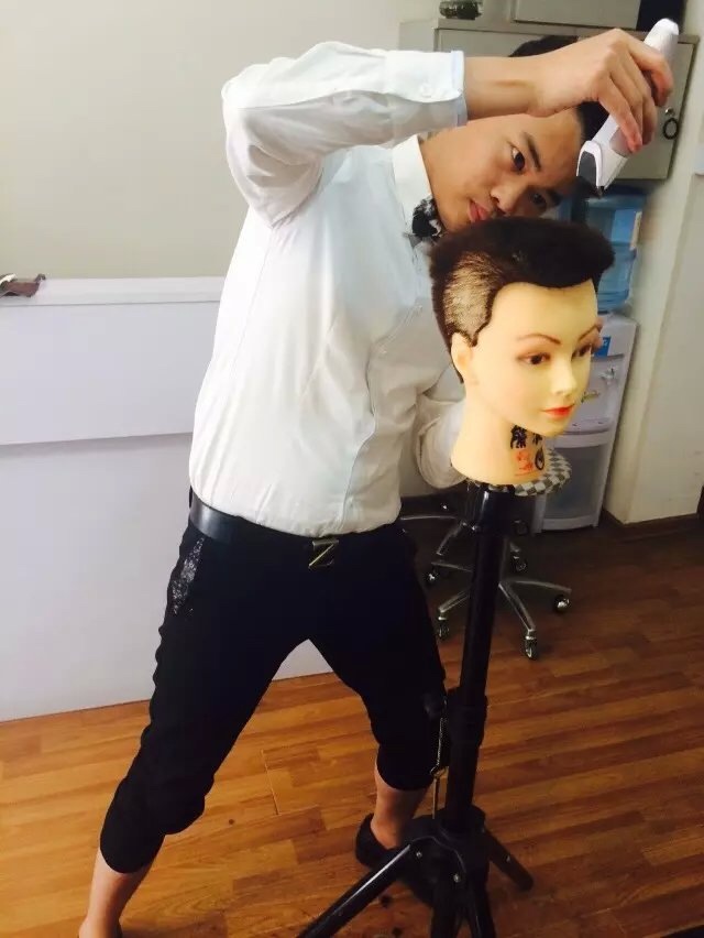有空的时候,大浪会把“模特”请出来,练习美发技艺